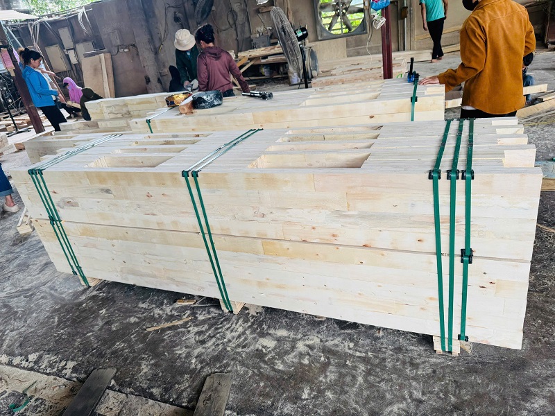 ◉ Wooden pallets are a reliable assistant in transportation and warehousing. The products are made from acacia, pine, eucalyptus, and other types of wood, according to customer requirements.